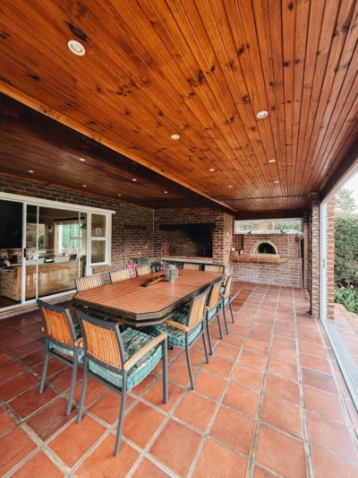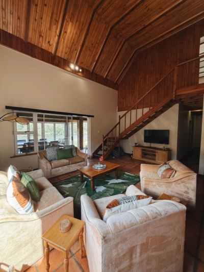 Inside, the generously sized rooms offer ample space for a comfortable stay, and the large communal living area beckons with a TV and a warm fireplace, creating a cozy atmosphere for gathering and shared moments. The heart of the home lies in the open-plan, well-appointed kitchen completed with a scullery. Prepare delicious meals effortlessly and enjoy them in the expansive dining area. For those who love the art of grilling, the patio boasts an indoor braai and pizza oven, adding a touch of culinary delight during your stay. Upstairs, three bedrooms provide privacy and comfort, while the four downstairs bedrooms offer convenient access to the communal areas. Every detail has been considered to ensure your stay is both comfortable and practical.