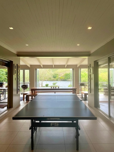 As the day unfolds, the spacious patio transforms into the heart of your stay—a space equally suited for quiet contemplation or lively gatherings. Whether it’s a fresh mimosa or a gin and tonic in hand, there’s something about sitting here, looking out over the water, that lends itself to the slow enjoyment of simple pleasures. Perhaps you’ll gather for a spontaneous game of ping-pong, with cheers and playful taunts filling the air. Or, as the kids run in from the jetty, proud of their fishing attempts, the patio becomes a gathering place for sharing stories, snacks, and plans for the rest of the day.