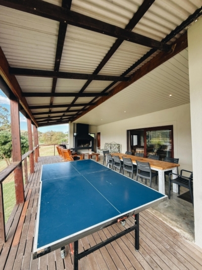 As the days linger, conversation flows as easily as the river, the crackling braai fire on the patio filling up the space. It’s a place where afternoons basking on the sunbed seamlessly turn into evenings, where dinners are unhurried affairs, and where the sound of laughter feels as natural as the breeze. When you’re not about the house and the myriads of spaces it offers, it’s onto the lawn that leads to the private deck by the river. Here the river is more than just a backdrop, but an invitation to play and explore. The jetty becomes a launchpad for adventure, whether you’re gliding out on the kayak for a peaceful paddle, or hopping into the canoe to explore further along the river’s winding course. The slipway provides easy access for all sorts of fun on the water, making it effortless to spend the day on the river. On the deck, riverside picnics or quiet moments with your morning coffee are encouraged, as the tranquillity of the surroundings sets the perfect tone for the day.