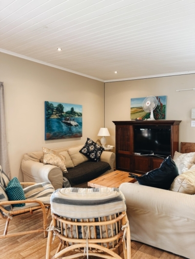 A promise of escape, where time slows down and the simple pleasures of life come into sharp focus. Mornings start with quiet coffees on the patio, afternoons are filled with games and riverside adventures, and evenings drift effortlessly into one another. Breede Getaway offers the perfect backdrop for family gatherings and sun-soaked holidays, with warm and inviting charm, enhanced by floor-to-ceiling windows that frame breathtaking river views. Step outside, and the river takes centre stage—days unfold with the simplicity of barefoot walks to the jetty, launching a kayak for a gentle paddle, or casting a line in hopes of a fresh catch for dinner.