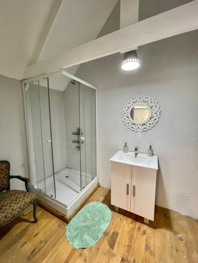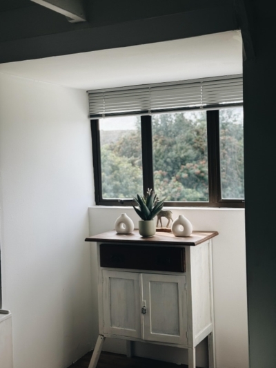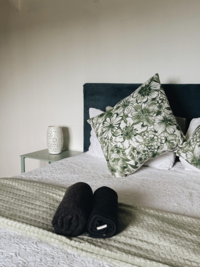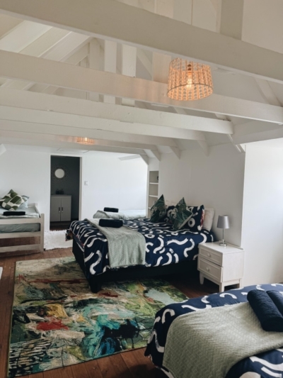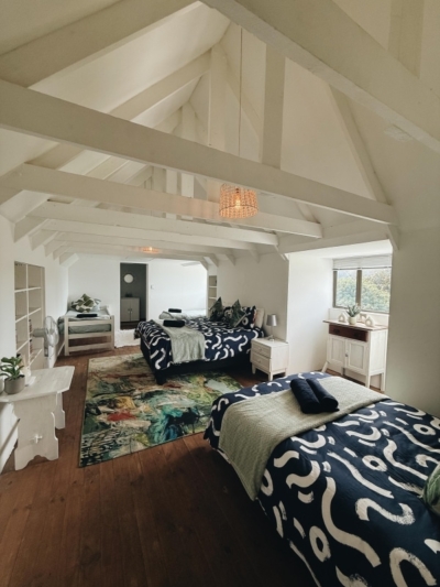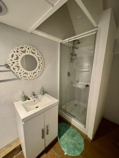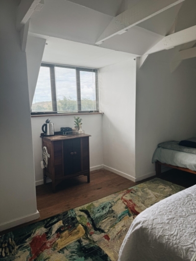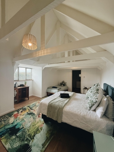 Upstairs, you’ll find two bedrooms – each with its own en-suite. The separate flatlet contains a double bed, en-suite, and kitchenette.