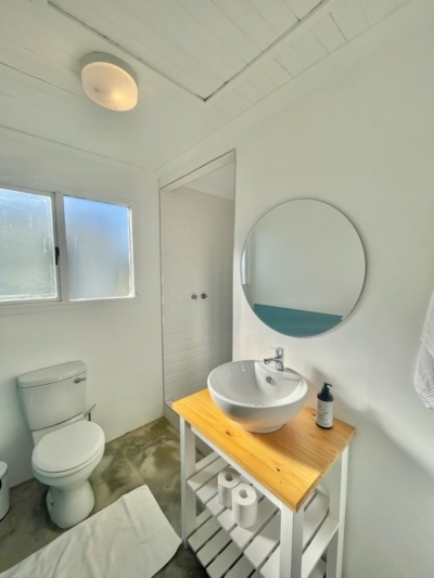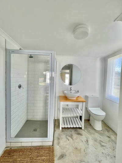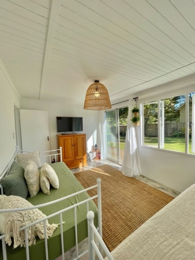 - Open plan living, dining, kitchen, TV room with sofa beds and bathroom.