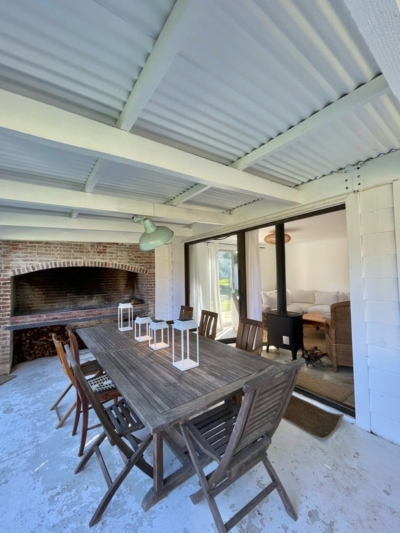The patio includes a built-in braai, seating, and a table. Your stay is completed with a private jetty, slipway, and your own private beach for fishing, sunbathing, and admiring the beauty of the river, sunrises, and sunsets.