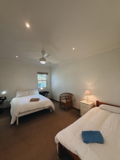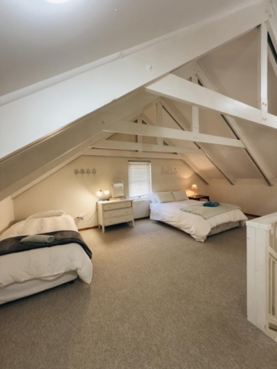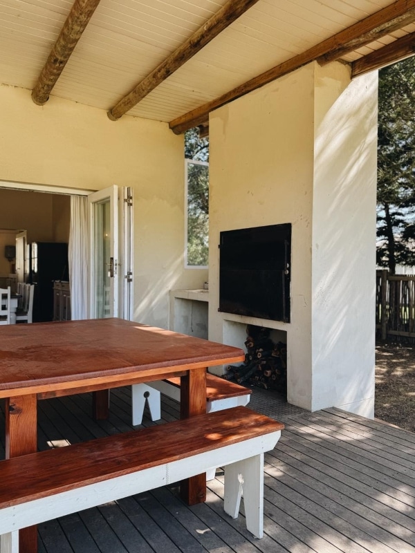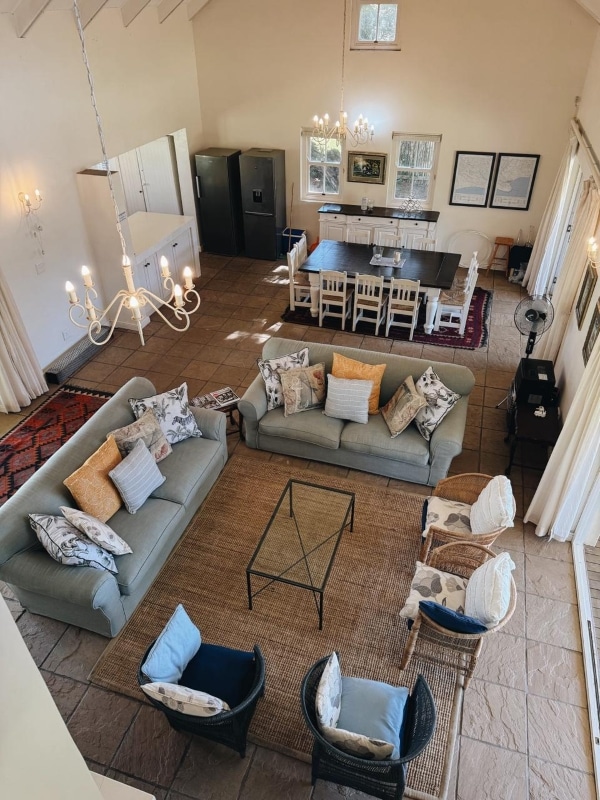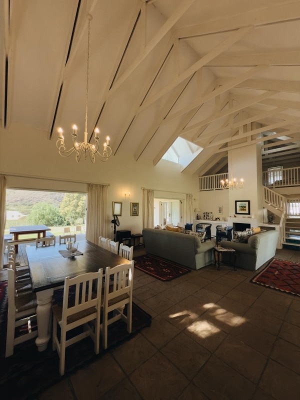 The main house features an open-plan living/dining room with a built-in fireplace and stack doors leading to an undercover patio with a built-in braai – perfect for alfresco dining. Bedrooms offer diverse views, including river vistas and lush backyard gardens. The loft, with its additional sleeping space, adds a touch of adventure. For added flexibility, Duikers Dash includes a separate flat with its kitchenette and two bedrooms.