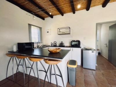 As you step onto the large porch overlooking the river, you’ll be greeted by the sights of the herons gracefully gliding across the water, their necks and elegant wings adding to the serene atmosphere. Inside, the cottage exudes tranquillity, with bright, open spaces that invite you to relax and unwind. Whether you’re sunbathing on the riverbank, kayaking along the water’s edge, or simply enjoying a leisurely stroll through the surrounding fynbos, there’s no shortage of activities to keep you entertained. Birdwatching enthusiasts will be delighted by the diverse array of birdlife that calls the Breede River home, while those looking for a bit more adventure can explore the nearby hiking trails, take the scenic boat ride along the river, or go horseback riding.