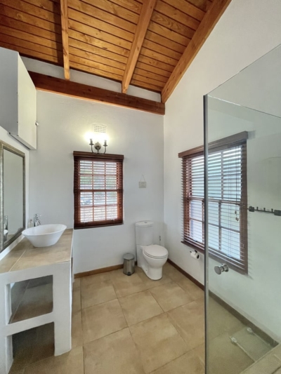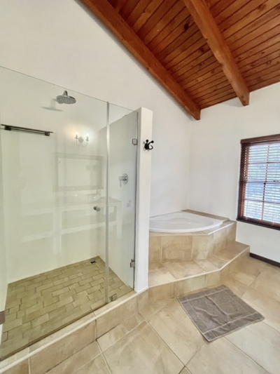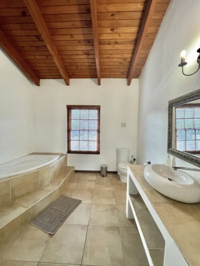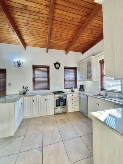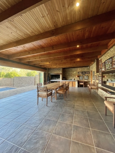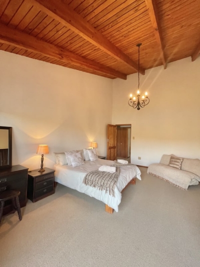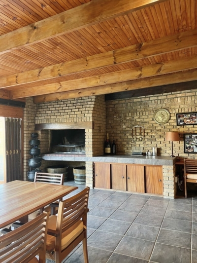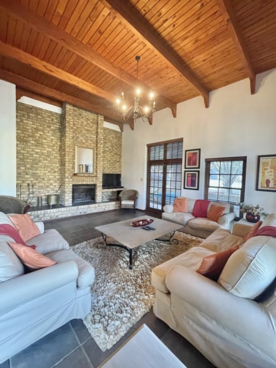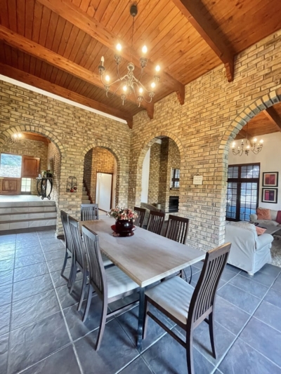 As the day unfolds, you find yourself drawn to the living room, where sumptuous seating and a crackling indoor fireplace await. The TV and DSTV provide entertainment, but it’s the view of the river through the large windows that truly captivates. Whether you’re curled up with a book or engaged in lively conversation, the living room becomes a sanctuary of comfort and relaxation.