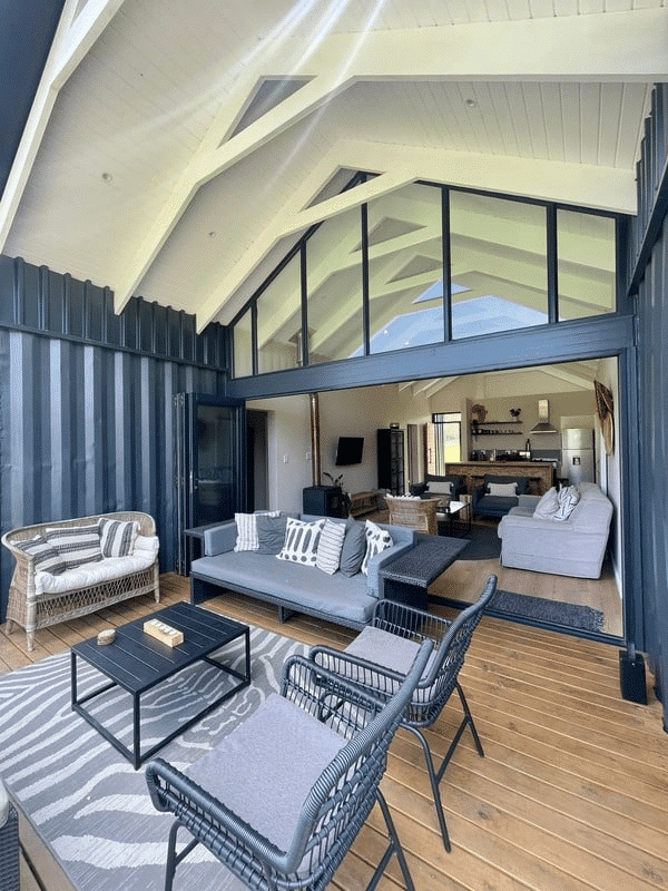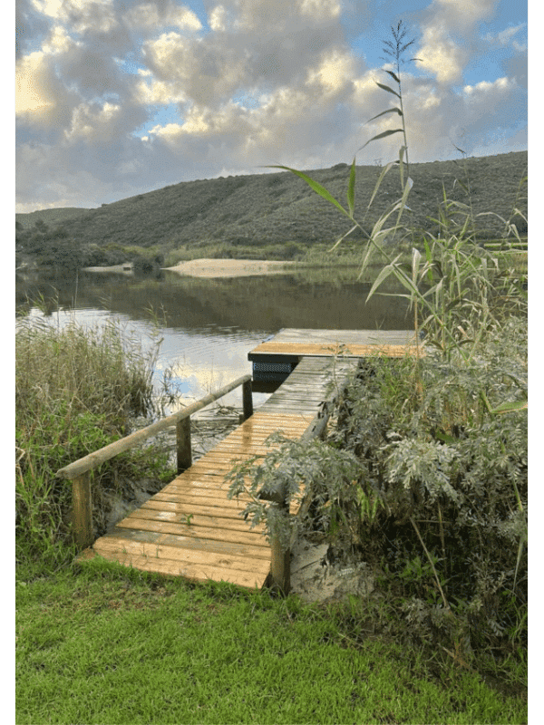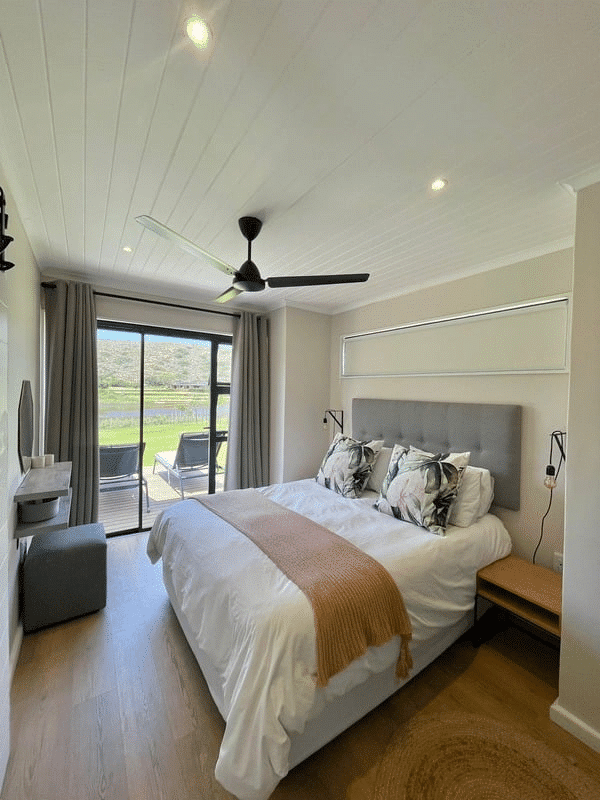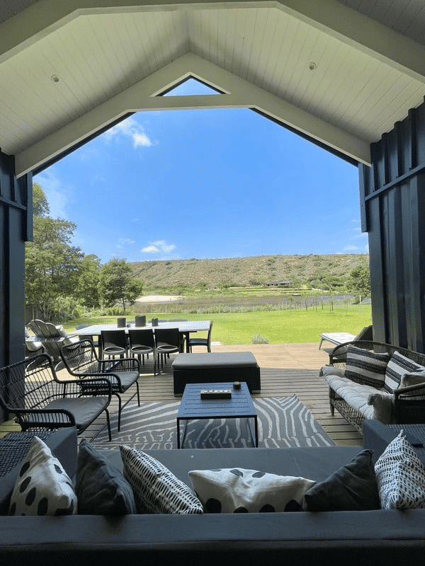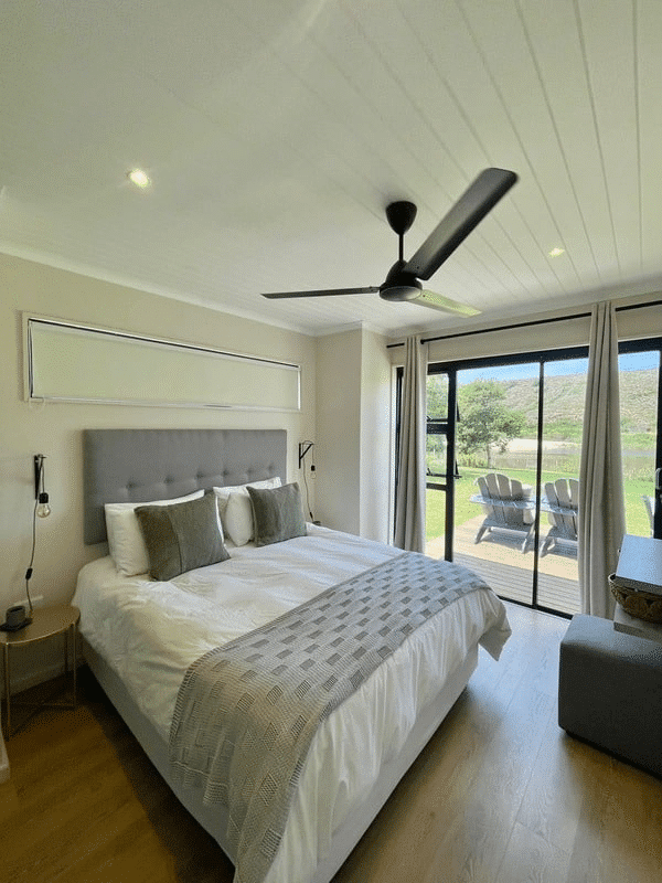 Time seems to stand still as you step through the door, enveloped in a sense of tranquillity that can only be found in nature’s embrace. Floor-to-ceiling windows frame panoramic views of the river, inviting you to lose yourself in the rhythmic flow of the water and the gentle sway of the reeds. With the calls of fish eagles and rustling bullrushes, the worries of the world slowly fade away and are replaced by a profound sense of peace. Amidst these enchanting melodies, a soft whisper draws you towards the sprawling deck that gazes out upon the tranquil expanse of the river, which becomes your haven, your refuge from the chaos of everyday life. Here, amidst the tranquil beauty of the Breede River, you are reminded of the simple joys of existence, the beauty of a sunset, the laughter of loved ones, and the feeling of grass beneath your feet. As you settle into the outdoor lounge, the warmth of the sun on your skin and the soft caress of the breeze on your face lull you into a state of blissful relaxation. Hammocks sway gently in the wind, inviting you to surrender to their gentle embrace, while sun loungers offer a front-row seat to the splendour of nature unfolding before you.