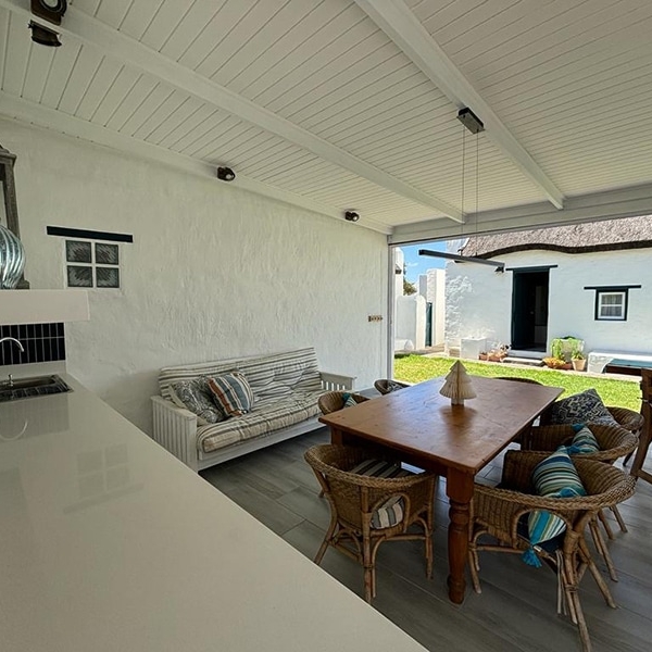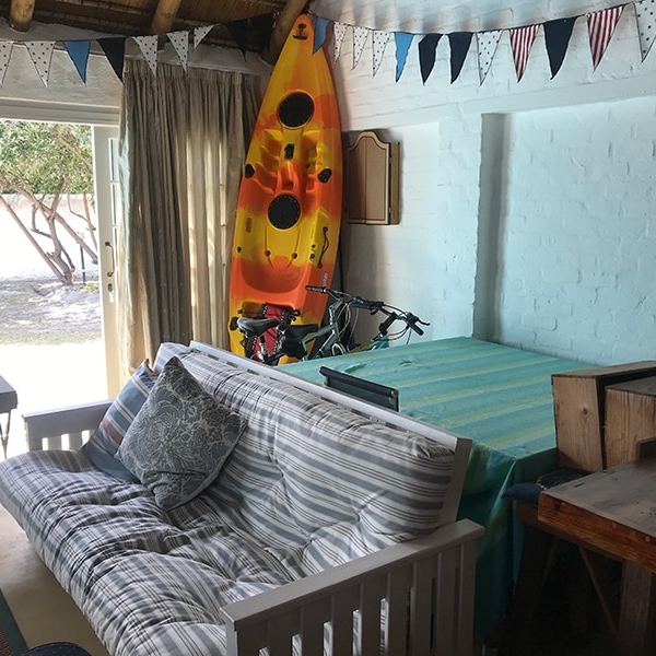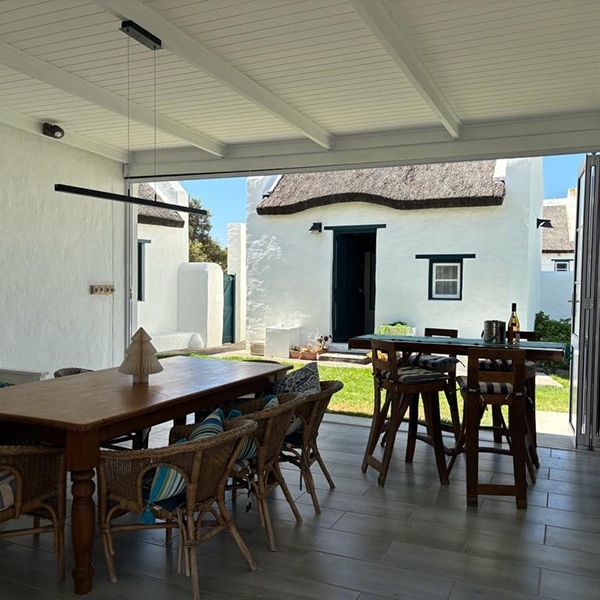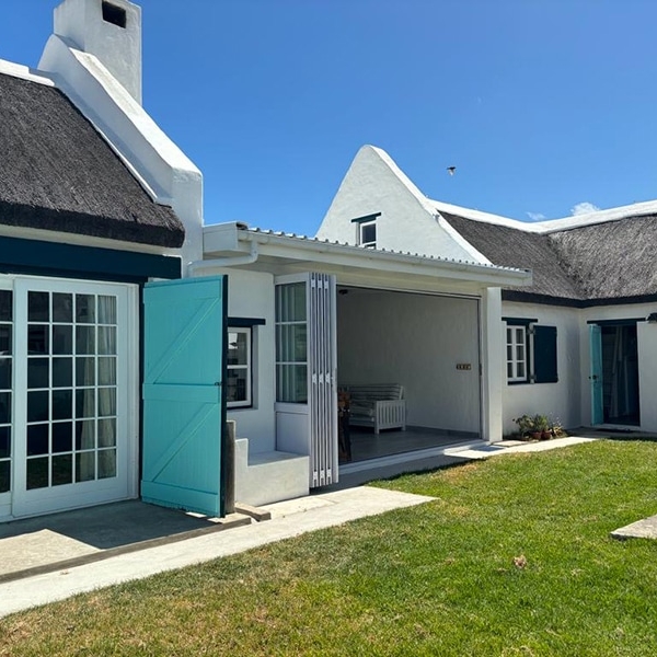 Nestled within the serene embrace of Langezandt Estate in Struisbaai, where the whisper of the ocean mingles with the rustle of the wind-swept dunes, lies a haven of coastal charm and timeless tranquillity. Our fishermen-style cottage is a sanctuary where every corner whispers tales of seafaring adventures and salty sea breezes. As you step through the wooden gate, the cosy outdoor area welcomes you, leading to the cottage adorned in a palette of whites and blues, mirroring the colours of the nearby beach, beckoning you to wander barefoot along its sandy shores.
