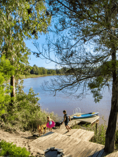 Outside, the garden stretches to the edge of the river, creating a lovely kids-friendly area with a private beach. The grass lawns, perfect for picnics and games, are a playground for young and old alike. And with a fire pit, you can gather around the flames and share stories long into the night.