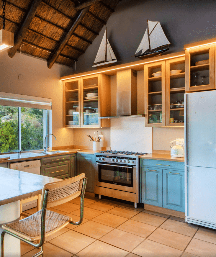 The heart of the home is the extra-large kitchen, where you’ll find everything you need to cook up a feast. The indoor braai, perfect for grilling up your favourite dishes, is a favourite spot for gathering and sharing stories. And with a wooden deck, there’s no better place to enjoy a glass of wine as the sun sets over the mountains.