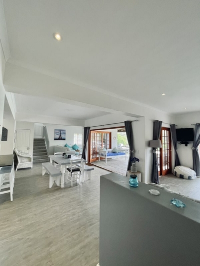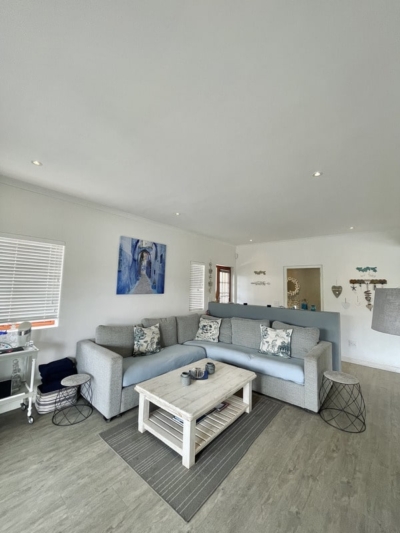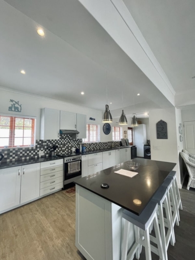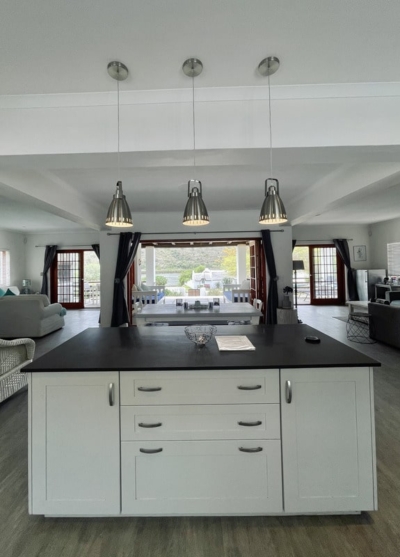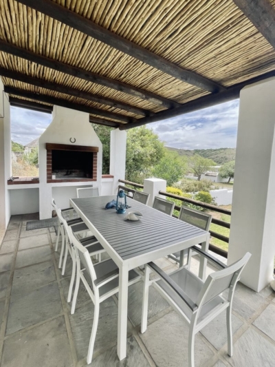 Outside, the large fenced private garden is a playground for both young and old. The built-in braai and outdoor dining table invite you to gather for a barbecue, while the jetty offers unobstructed views of the river. And for those who love the water, direct access to the Breede River means endless opportunities for swimming, boating, and fishing.