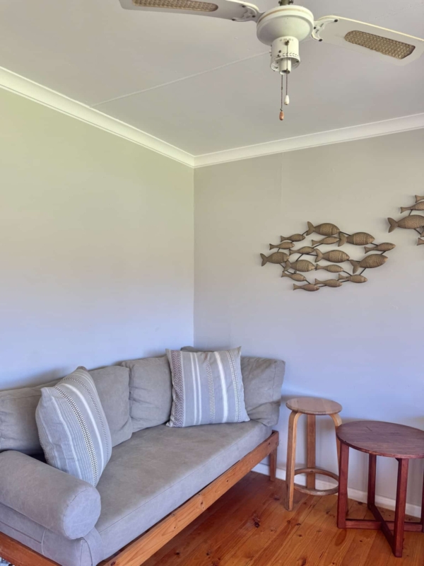 The home itself offers a welcoming blend of comfort and simplicity, designed for easy-going riverside living. Three bedrooms provide inviting spaces to retreat after a day well spent. The first offers a queen bed, a cozy haven to retreat to at day’s end. The second, with a single bed and bunk beds, is a sanctuary for children, where whispers and giggles continue well into the night. The third, another queen-bedded room, opens onto a small private patio—a quiet spot to enjoy a moment of solitude with the river in view. The open-plan living and dining areas encourage togetherness, where meals are shared and stories exchanged long after the plates are cleared.