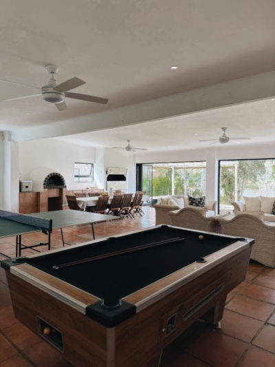 The property effortlessly blends indoor comfort with outdoor living. Spacious decks and open-plan interiors lead naturally onto large lawns, inviting family games, picnics, or quiet moments in the sun. Afternoons are filled with playful competition: who will master the pizza oven first, whose strategy wins at table tennis, and which team claims bragging rights after a friendly pool match? Every corner of the home is designed to spark connection, from lively family challenges to simple moments of shared laughter.