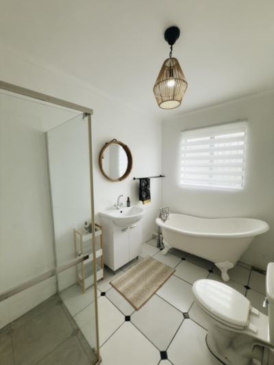 - Both with bath, shower, toilet and basin