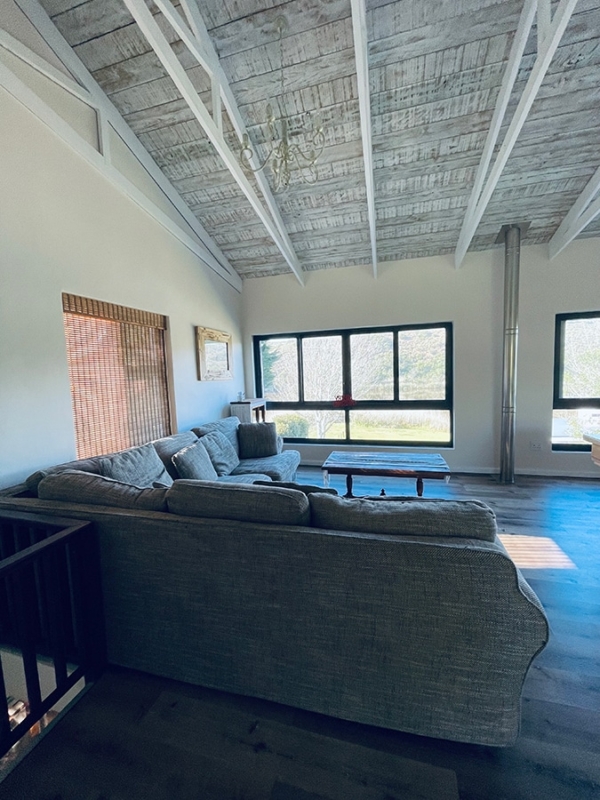 As you step inside, you’ll be greeted by the warm glow of a cozy fireplace, inviting you to unwind and relax. The living area is bathed in natural light, thanks to big windows and sliding doors that offer uninterrupted views of the river. It’s a space that feels both spacious and intimate, perfect for spending quality time with loved ones or simply enjoying a moment of solitude.